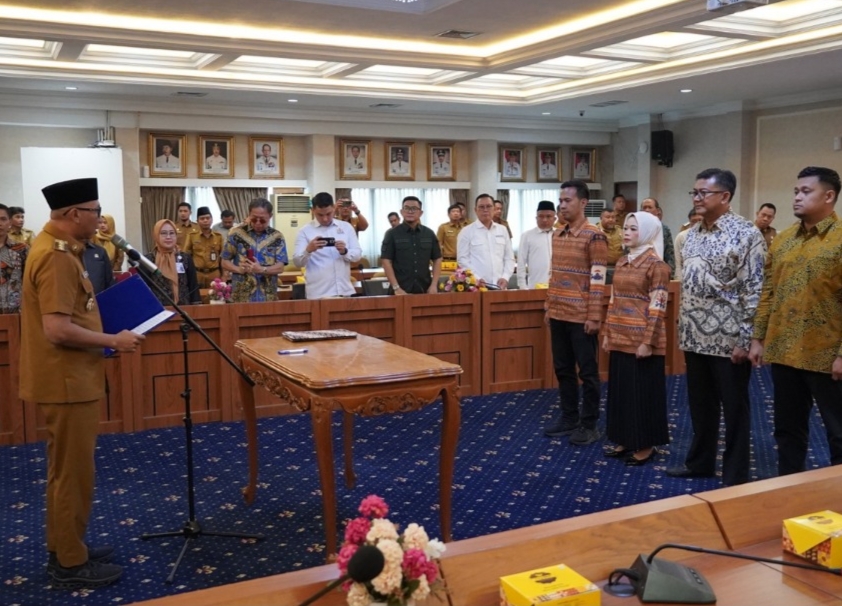 BANDAR LAMPUNG (PERISAILAMPUNG.COM) — GUBERNUR Lampung Rahmat Mirzani Djausal resmi mengukuhkan jajaran direksi dua Badan Usaha Milik Daerah (BUMD), yakni PT Wahana Raharja (Perseroda) dan PT Lampung Jasa Utama (Perseroda). Pengukuhan berlangsung di Ruang Rapat Utama, Kantor Gubernur Lampung, Selasa (30/9/2025).